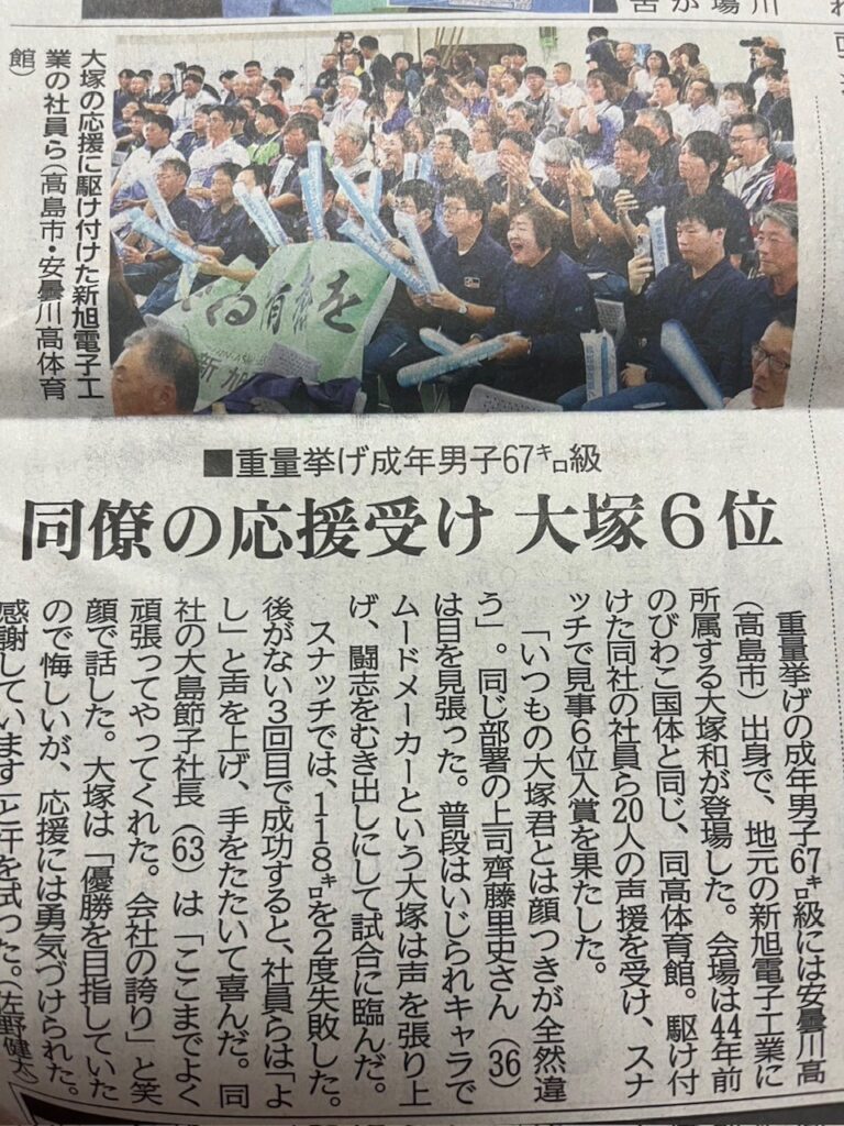 ウエイトリフティングは、当社所属の大塚和選手の出場が決まり、